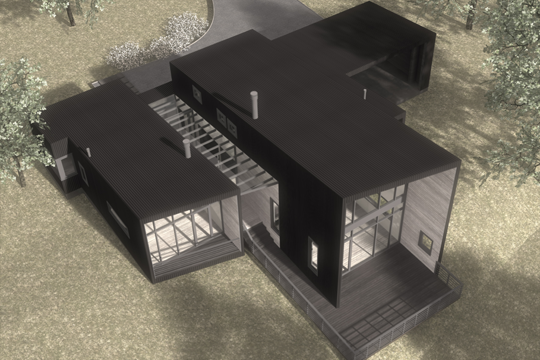 | > DOS CASAS EN FRUTILLAR Proyecto de dos inmuebles nuevos en la Zona Patrimonial de Frutillar, con sistema estructural modular prefabricado. 260m2. Frutillar bajo. 2015-2016 |